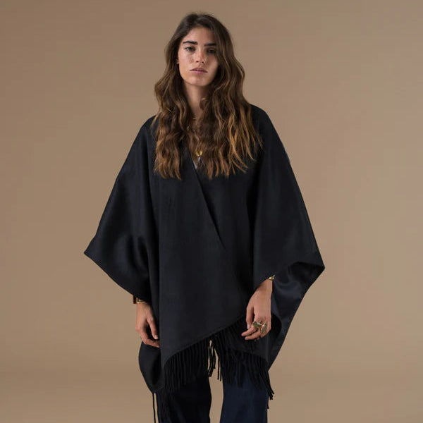 Manteau cape Antonia – Une pièce iconique au charme enveloppant, pensée comme une seconde peau pour affronter l’hiver avec élégance. Sa coupe fluide et ample sublime la silhouette tout en offrant un confort absolu, tandis que ses franges délicates apportent un mouvement subtil et une touche bohème résolument contemporaine. Conçu comme un cocon de douceur, ce manteau cape se porte aussi bien sur une tenue citadine que sur un look plus habillé, faisant de lui un allié indispensable des journées fraîches comme des soirées élégantes. Une pièce intemporelle qui allie style et liberté, reflet de l’ADN d'Adoré paris: l’élégance de la femme moderne, libre et authentique.