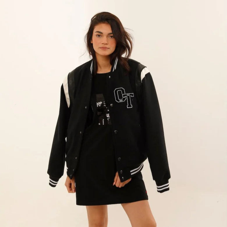 Le teddy NOLITA, est un modèle mixte, de part sa coupe droite, ses finitions bords-côtes rayées et sa broderie OT en font une pièce pensée pour toutes les silhouettes.